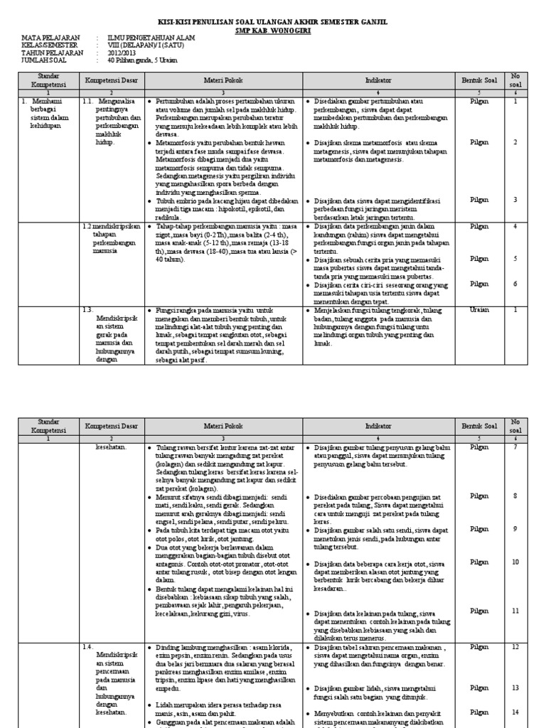 Kisi Kisi Pat Ipa Smp Kelas 7 Kurikulum 2013 Didno76 Com Cek juga paket pelajaran dari bimbel online zenius education. Biasanya bapak Tuesday 13 April 2021 SOAL TEKNO SOAL THEMES. Kisi-Kisi Penilaian Akhir Tahun Semester Genap Kelas IX SMPMTs ini mempunyai peran penting sebagai pedoman ataupun acuan guru dalam pembuatan soal.