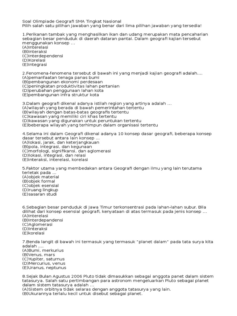 Soal Olimpiade Geografi Sma Guru Paud