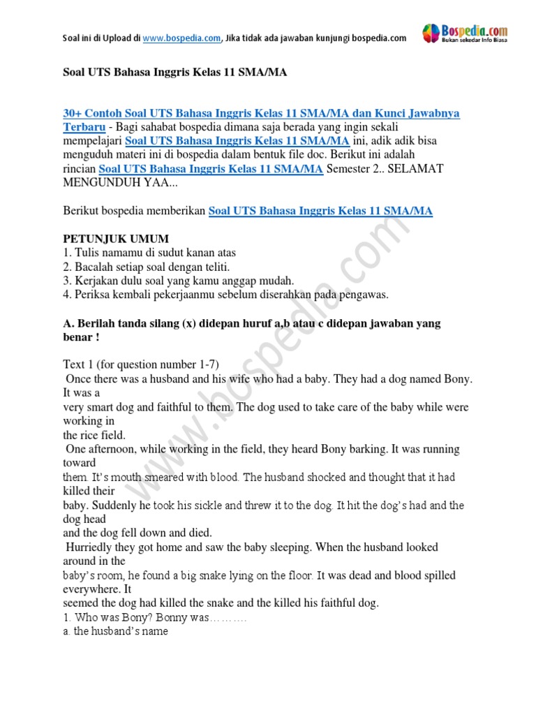 Lengkap 40 Contoh Soal Uas Bahasa Inggris Kelas 8 Smp Mts Dan Kunci Jawaban Terbaru Bospedia