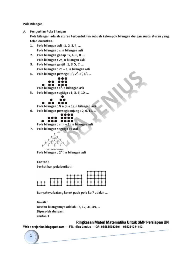 Ilmu Pengetahuan 10 Contoh Soal Pola Bilangan Kelas 8 Dan Pembahasannya Doc