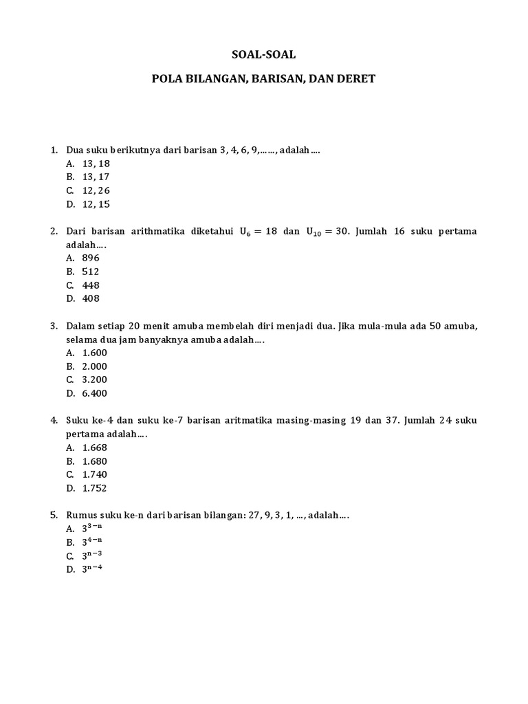 Soal Soal Pola Bilangan Barisan Dan Deret