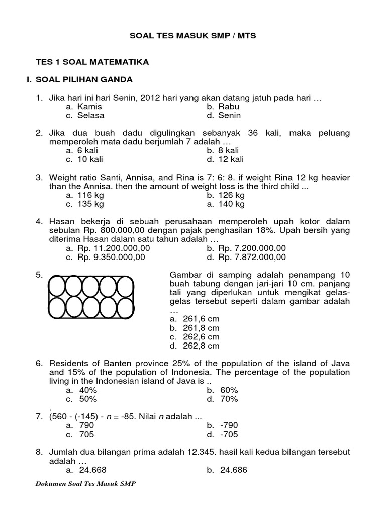 Soal Tes Masuk Smp Swasta Matematika Dan Ipa