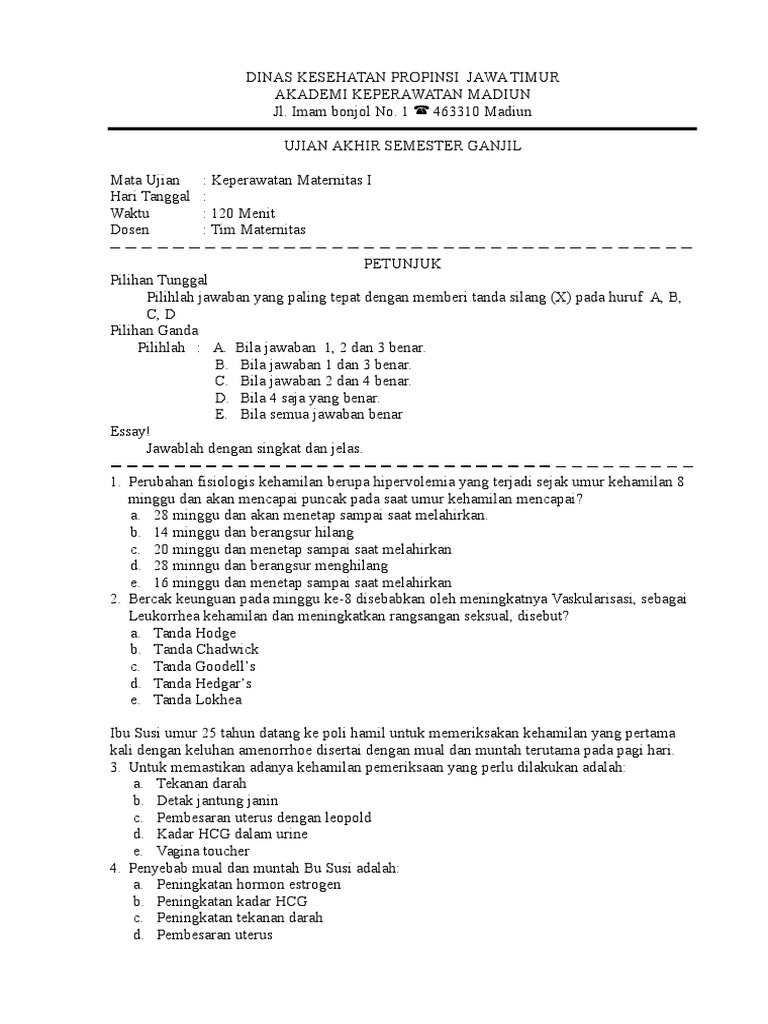 Contoh Soal Ukom Keperawatan Maternitas Dan Kunci Jawaban Cute766
