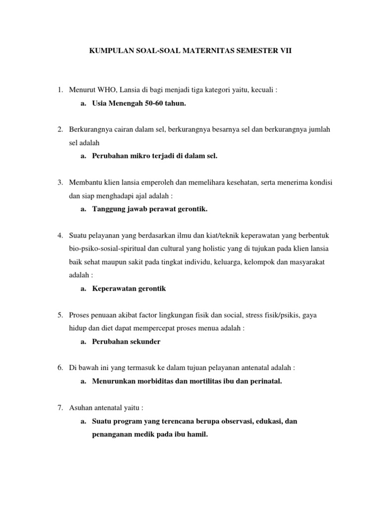 Keperawatan maternitas kumpulan soal. Sampai berjumpa lagi di kumpulan soal berikutnya. Contoh soal kasus kmb dan kunci jawaban edisi 175. Sampai berjumpa lagi di kumpulan soal berikutnya.