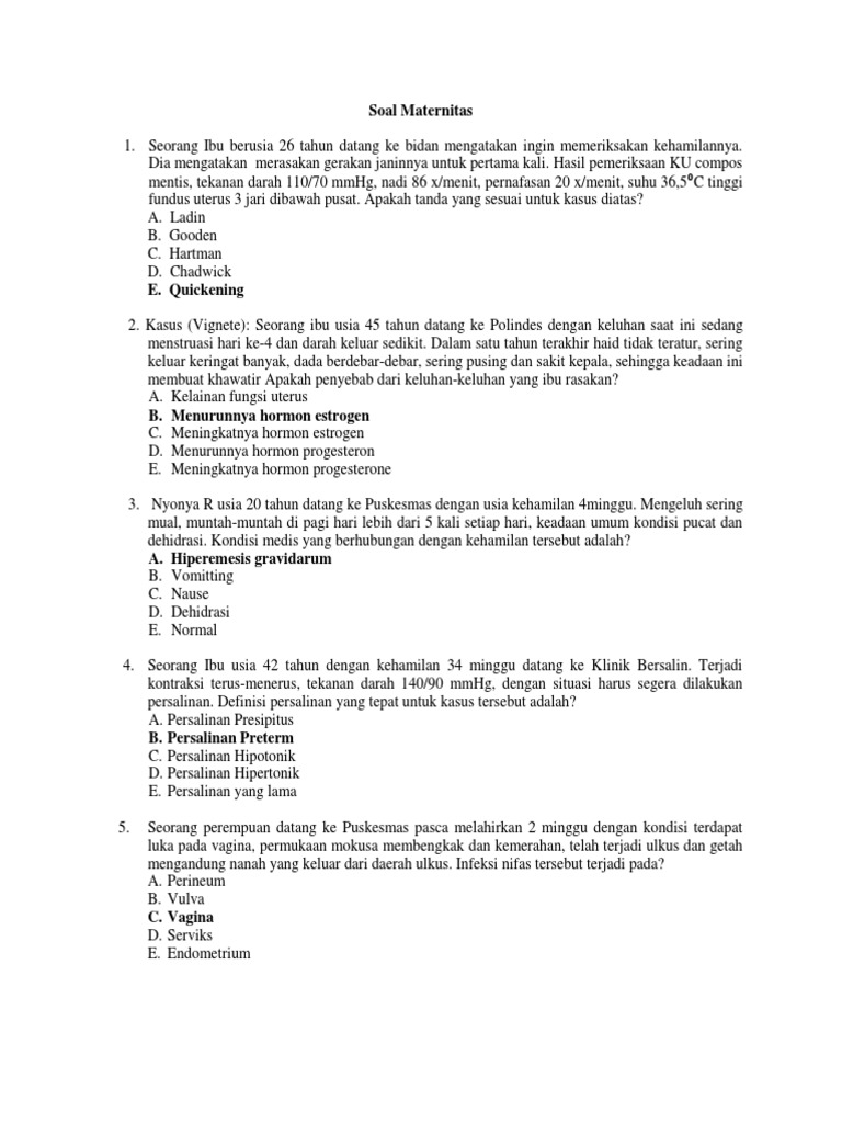 Doc Soal Ujian Kompetensi Maternitas Set 3 Retno Hidayah Academia Edu
