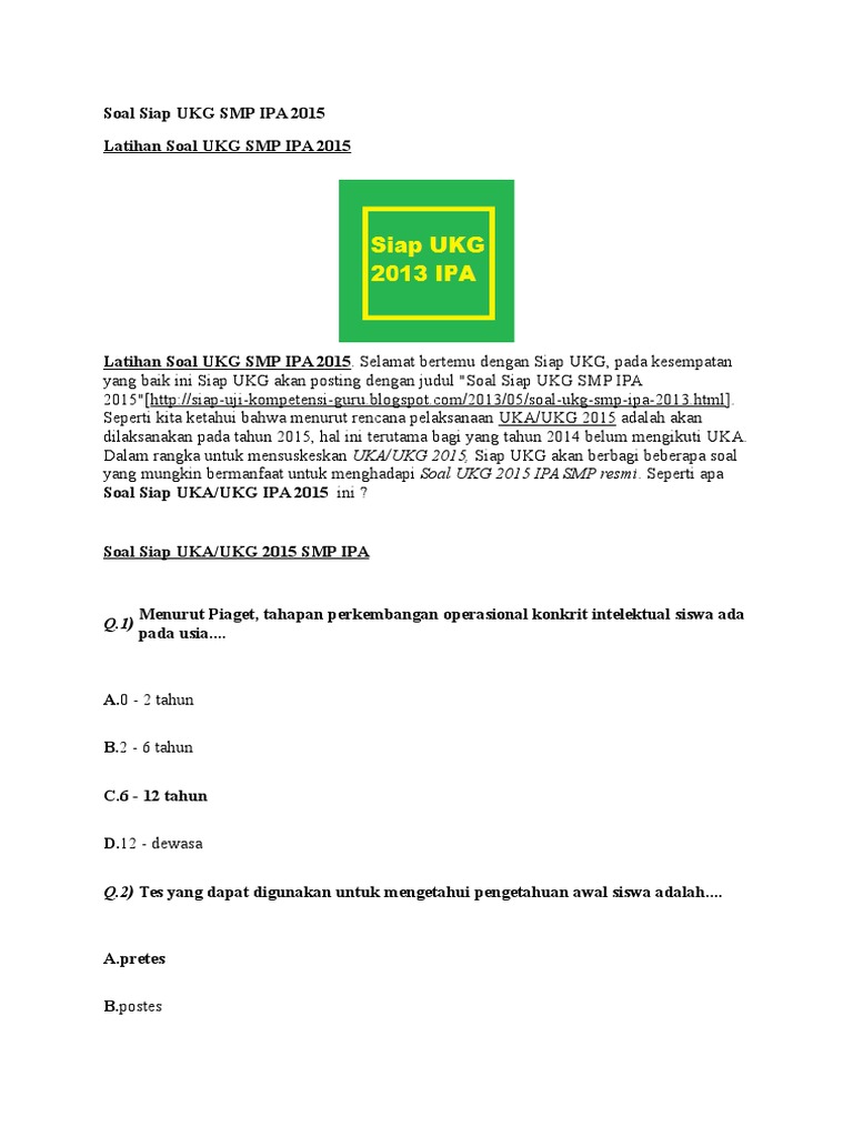 Contoh Soal Ukg Sd Ips Ipa B Indonesia Selengkapnya soal guru pembelajar 2016. Simulasi Soal UKG Online Ilmu Pengetahuan AlamIPA SMP - soal UKG Online 2015 - Uji Kompetensi Guruweb ukg online ini adalah cara latihan soal ukg online gratis untuk guru TK PAUD SD SMP SMA dan SMK. Download latihan soal ukg guru smp 2019 dan kunci jawaban prediksi soal ukg guru smp 2019 bagi yang belum tahu jadwalnya ujian ukg guru smp dijadwalkan akan dilaksanakan pada tanggal 2019.