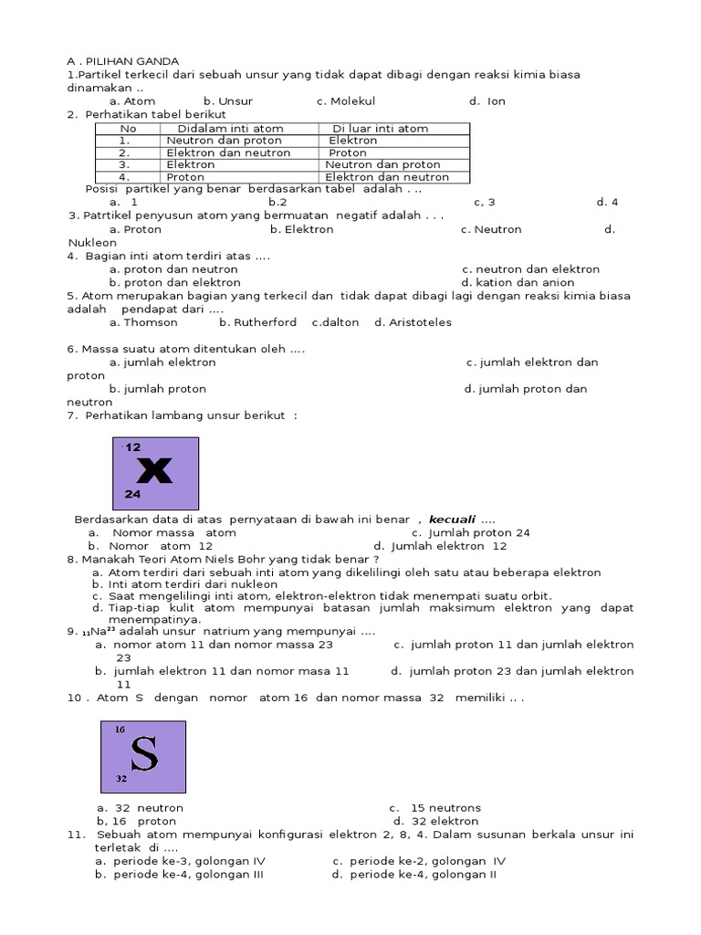 Soal Ulangan Harian Atom Dan Molekul