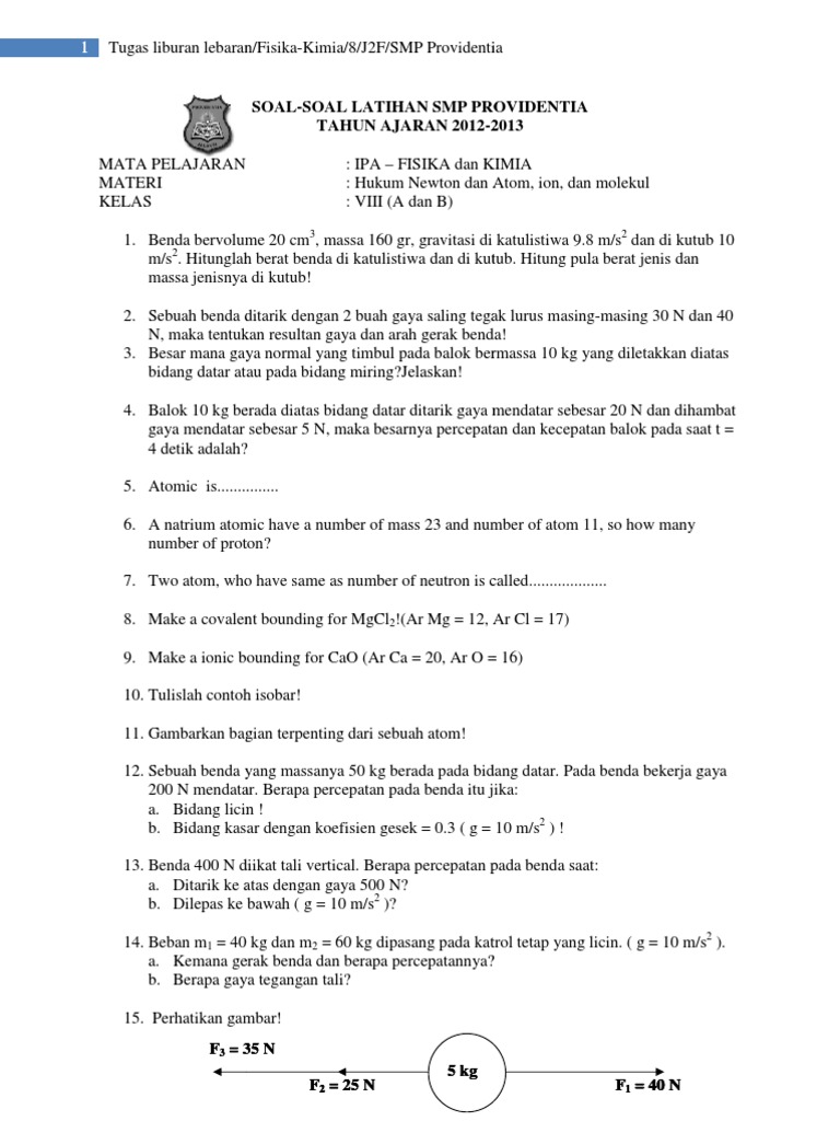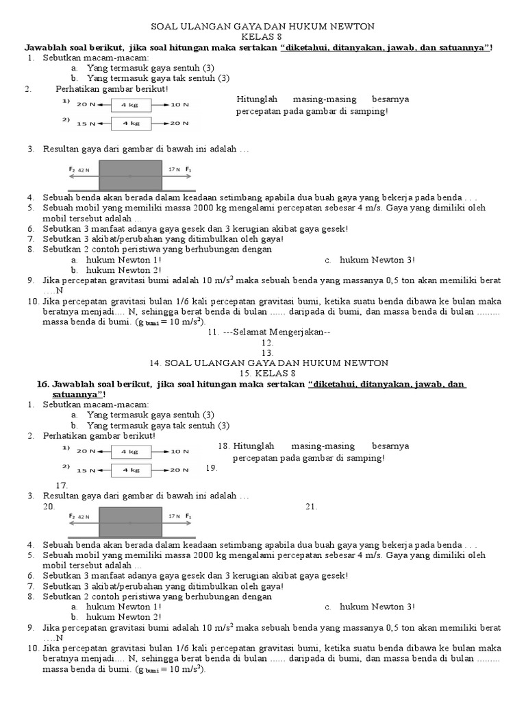 Soal Ulangan Kelas 8 Putra Gaya Dan Hkum Newton