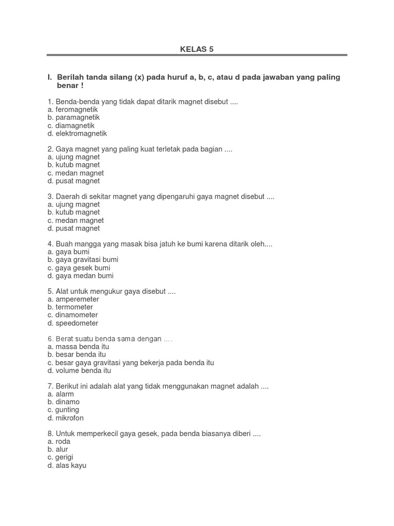 Soal IPA Kelas 5 Benda yang dapat digunakan untuk menarik benda yang lain adalah. Tentukan besarnya induksi magnet disuatu titik yang berjarak 2 cm dari kawat lurus panjang yang berarus listrik 30 a. Demikianlah ulasan yang mengenai Kumpulan Soal Olimpiade IPA SD dan Kunci Jawabannya.