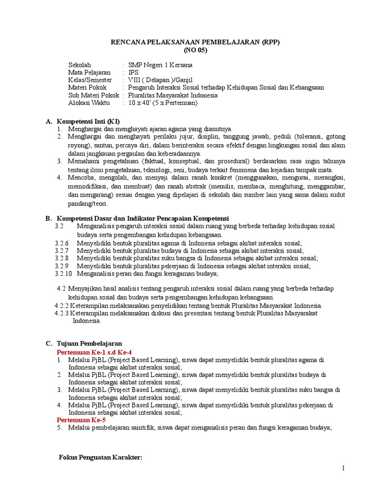 Rpp No 005 K 13 Ips Viii Pluralitas Masyarakat Indonesia