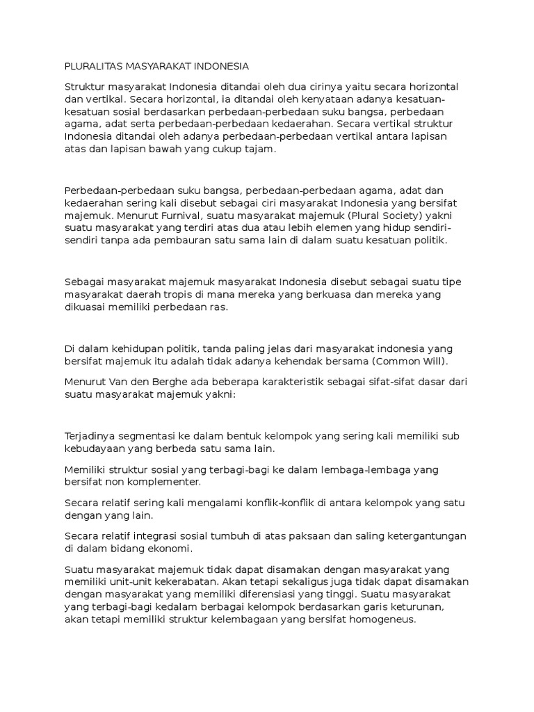 Pluralitas Masyarakat Indonesia IPS Kelas 8 Pluralitas adalah keberagaman atau kemajemukan yang terdapat dalam suatu bangsa yang mendorong tumbuhnya persatuan dan kesatuan. Pada postingan ini Sekolahmuonline masih melanjutkan sajikan khusus Contoh Soal Essay dan. Indonesia juga memiliki banyak suku bangsa.