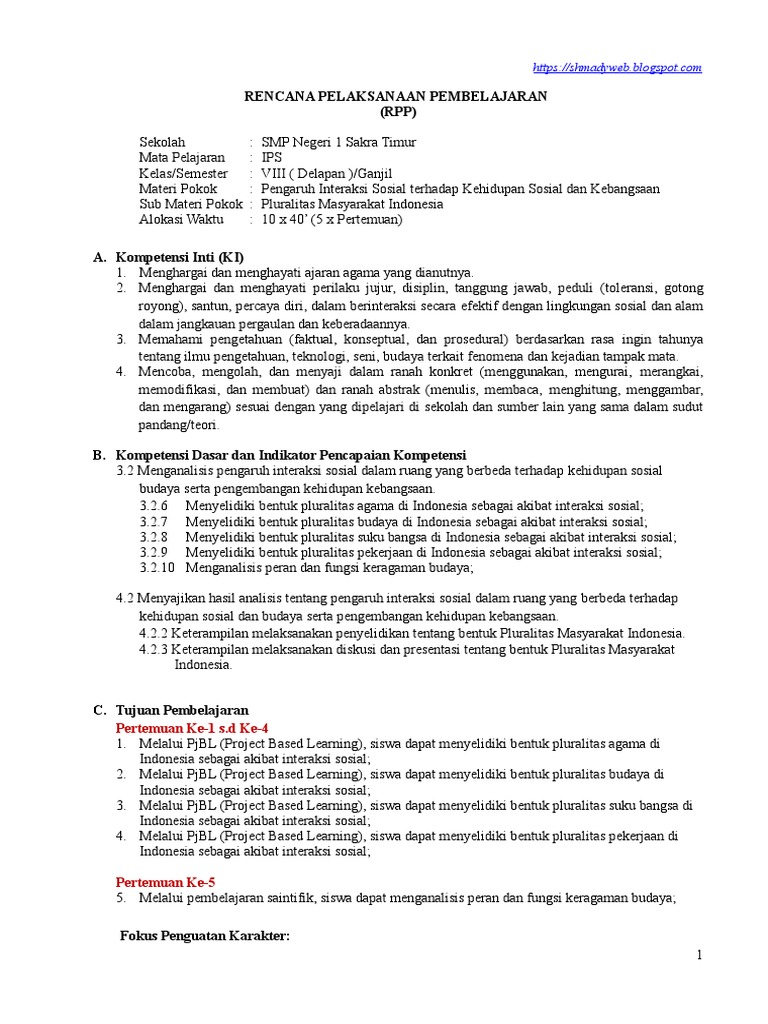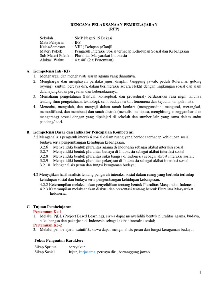 Download Rpp Pluralitas Masyarakat Indonesia Kelas 8 Semester 1 Ilmusosial Id