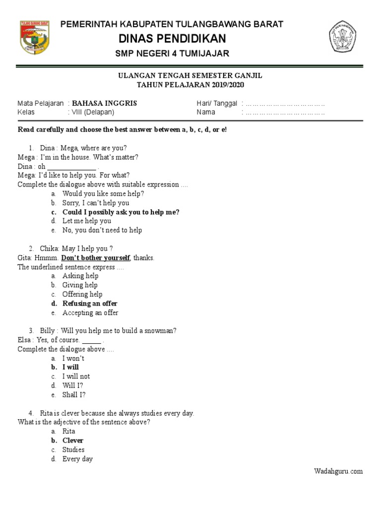 Kisi Kisi Soal Dan Kunci Jawaban Pas Bahasa Inggris Smp Kelas 8 Semester Ganjil Didno76 Com