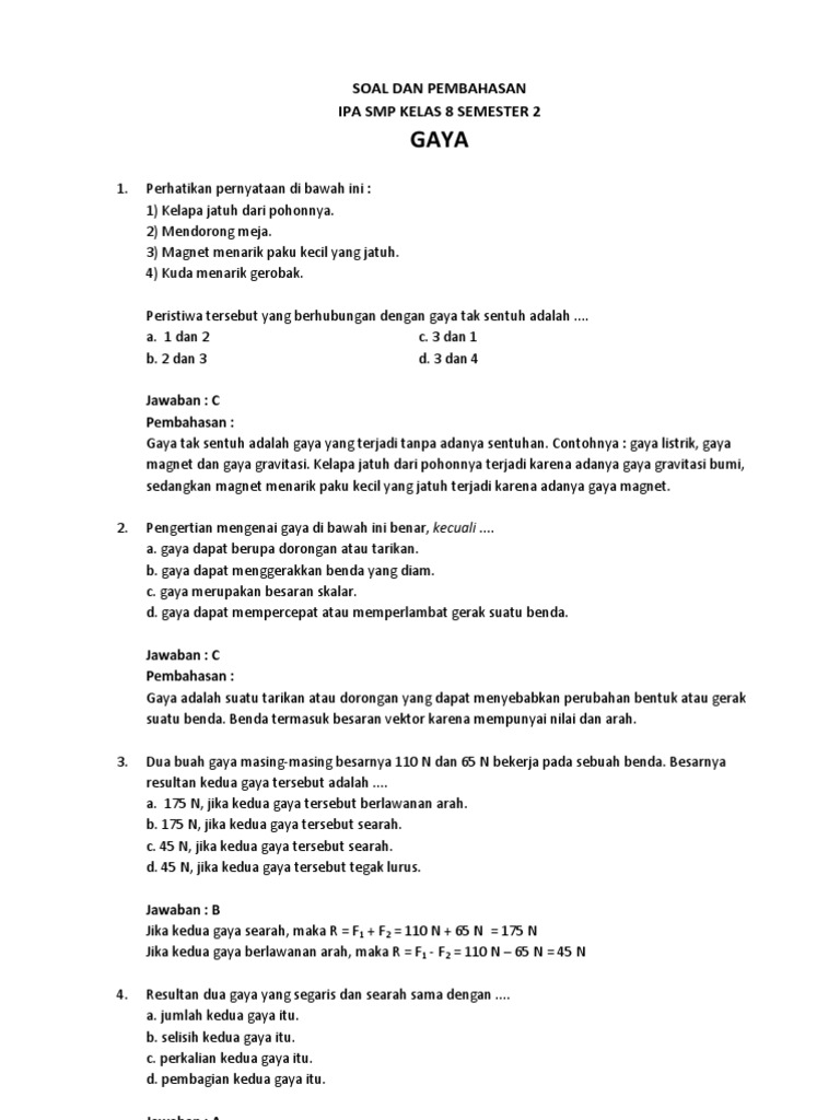 Latihan Fisika Bab Gaya Smp Kelas Viii