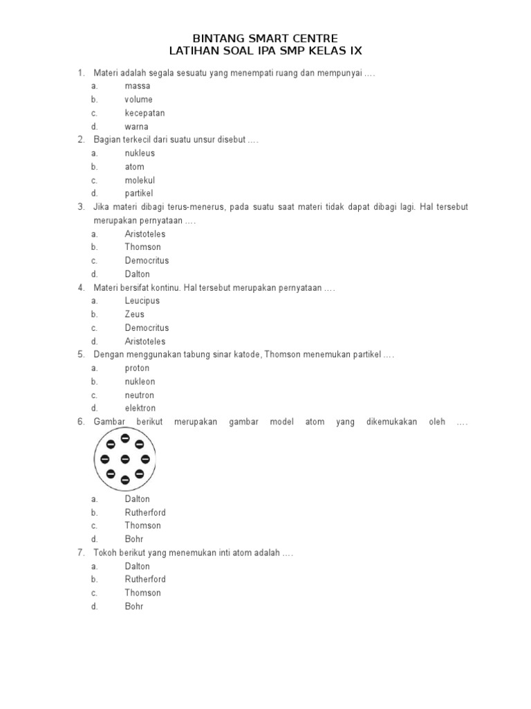 Contoh Soal Tentang Atom Ipa Kelas 8