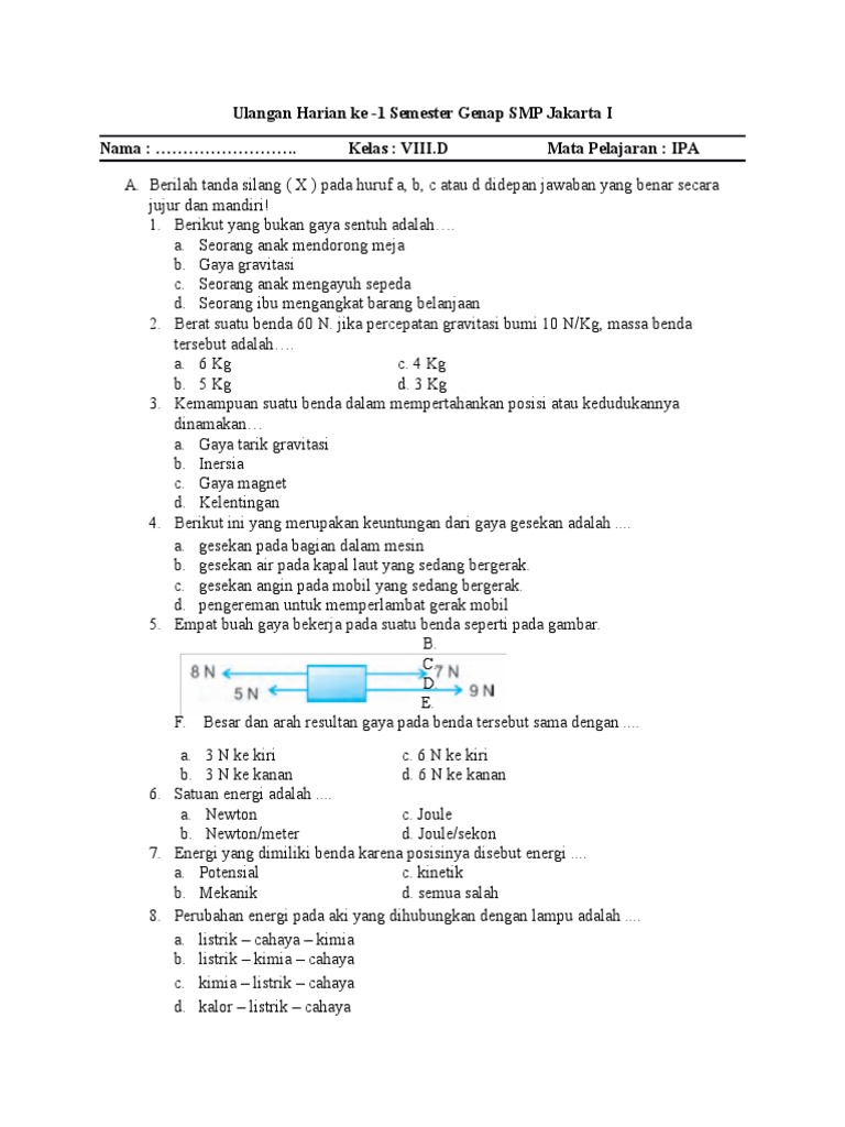 Kls 8 Gerak Dan Gaya Ulangan Harian Kur 2013